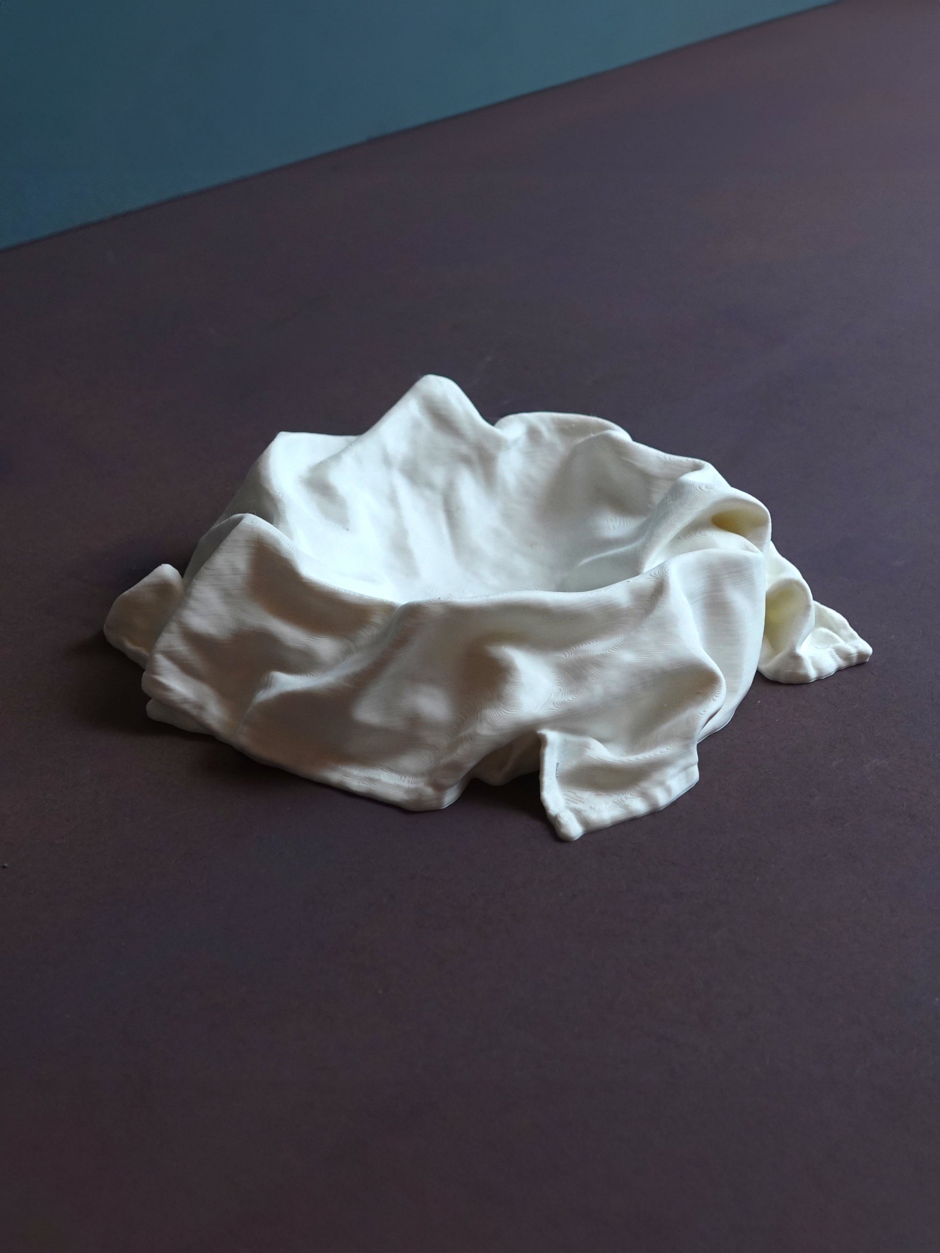 The "Cloth" bowl by Gazzaladra Design is a prime example of innovative design art that seamlessly combines functionality and aesthetic appeal. Made from PLA (polylactide) using the latest 3D printing technology, this design object captures the soft, flowing movement of a cloth in a solid, durable material.