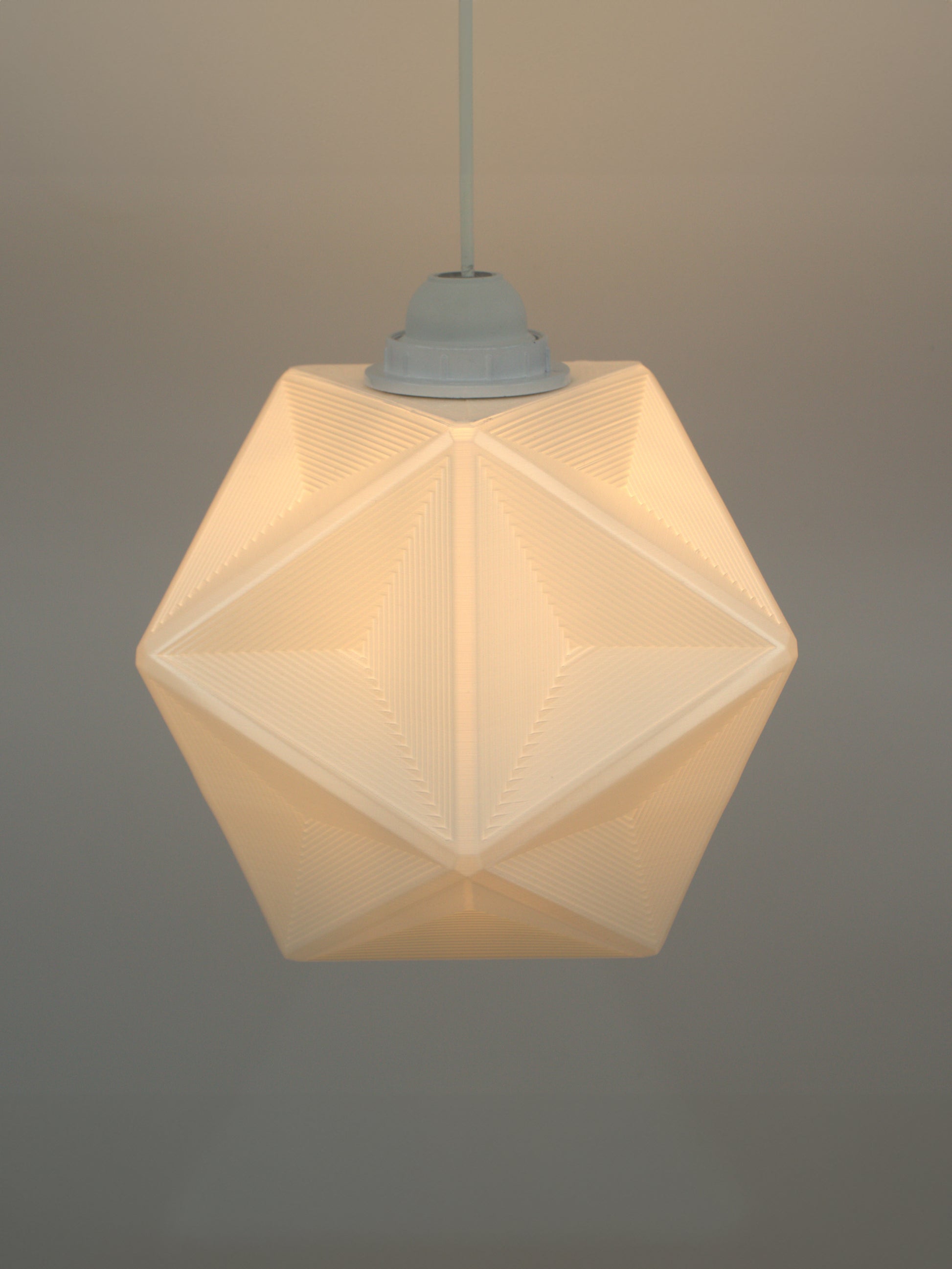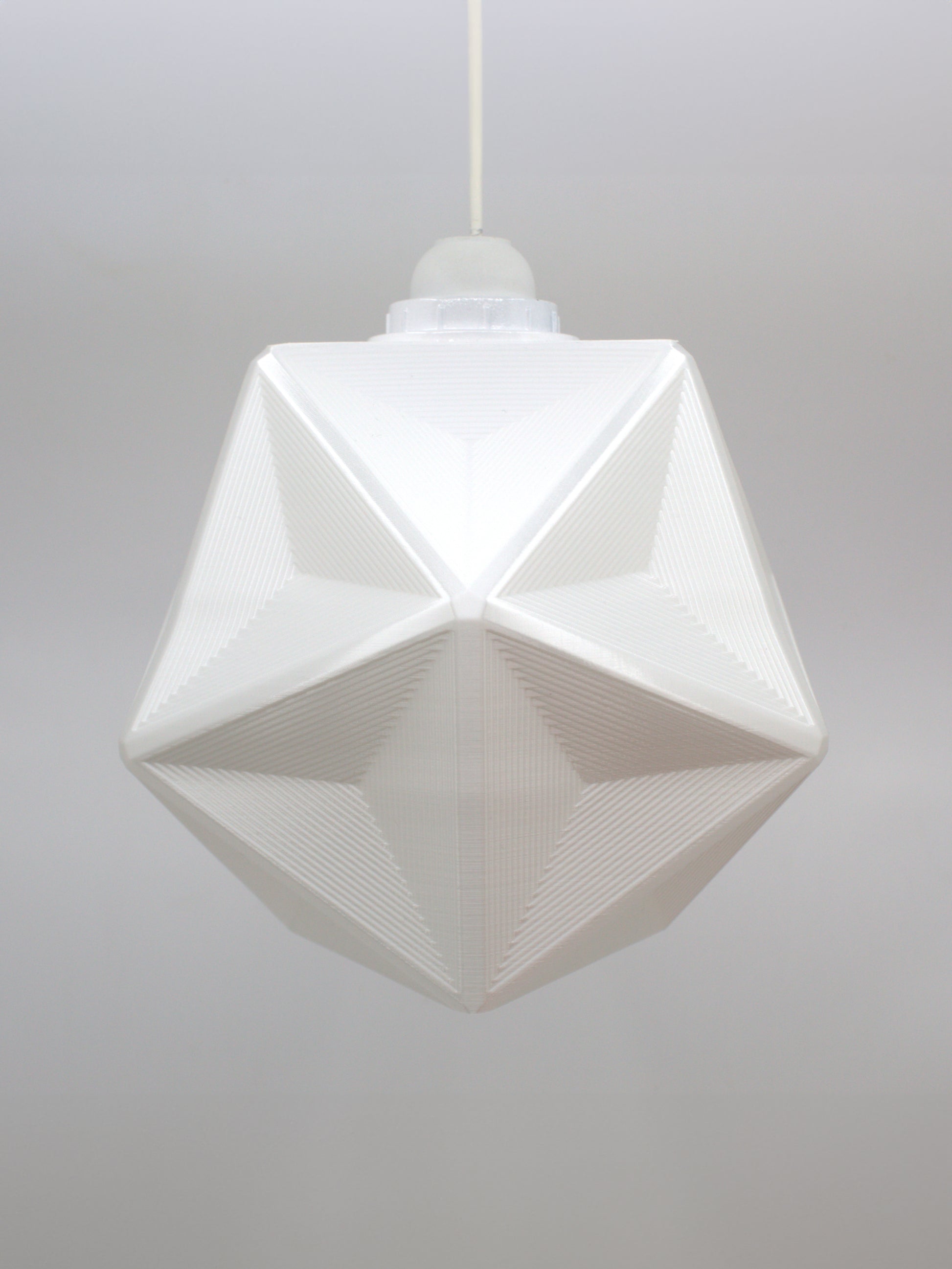 The pure white of the lampshade blends in with almost any decor and brings a modern, sculptural quality to the room. The use of 3D printing allows for a seamless form and level of detail that is difficult to achieve with other manufacturing processes.