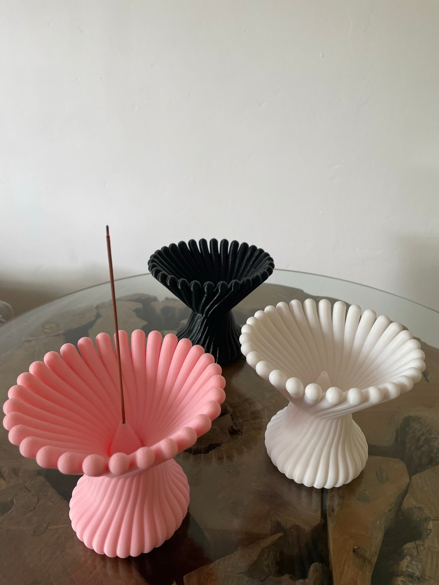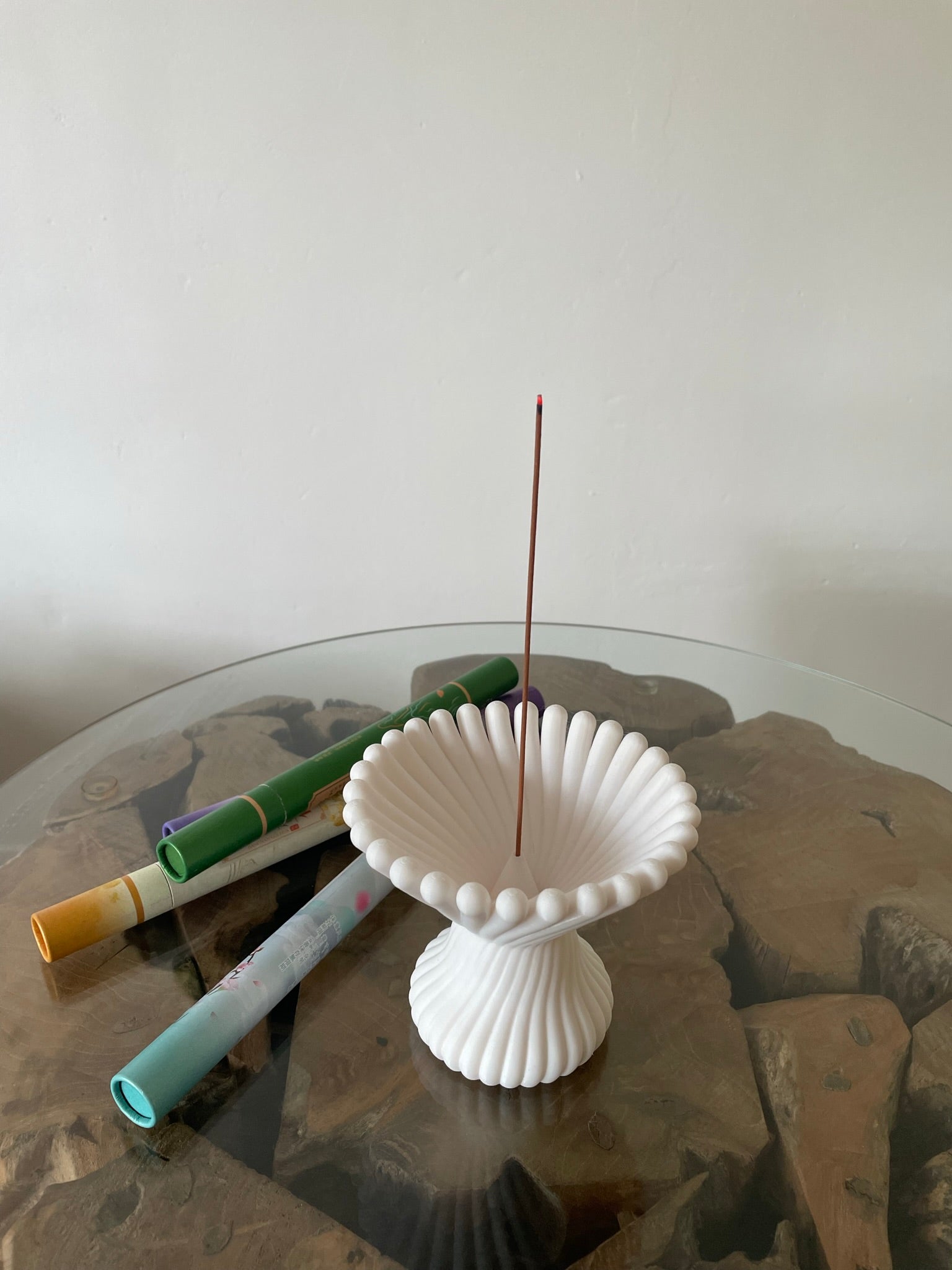 Finished in elegant white, this holder is not only functional by securely holding incense sticks and collecting the ashes, but also serves as a sculptural work of art that soothes the senses and inspires reflection. It is ideal for those who crave a touch of the sea or who want to enjoy the calming effects of incense in a contemplative setting.